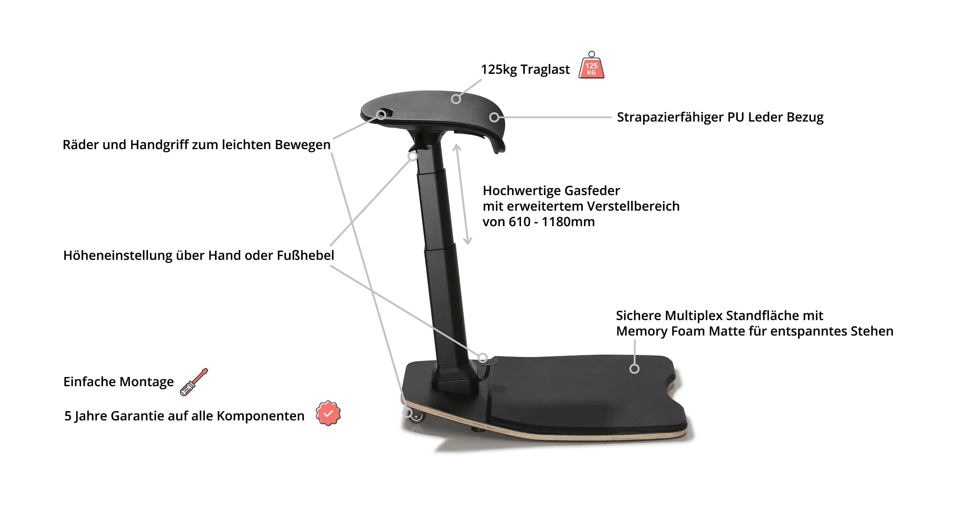 Stehhocker mit modernem Design - ergonomisch durchdacht für noch mehr Abwechslung am Arbeitsplatz.